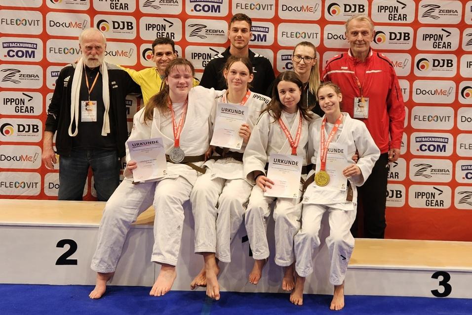 Ein großer Erfolg für den TV Hoffnungsthal: Unsere Judoka Veronica Dubina (2.v.l.) sicherte sich bei den Deutschen Meisterschaften 2026 in Leipzig einen hervorragenden 3. Platz.